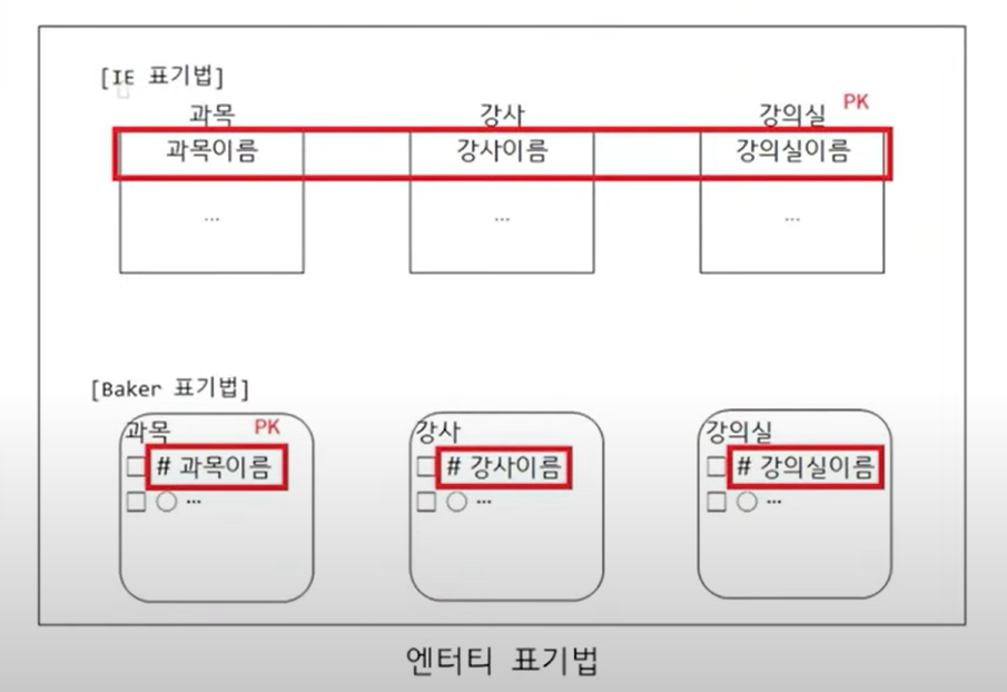 - 엔티티는 사각형으로 표현 / 속성은 조금씩 다름
