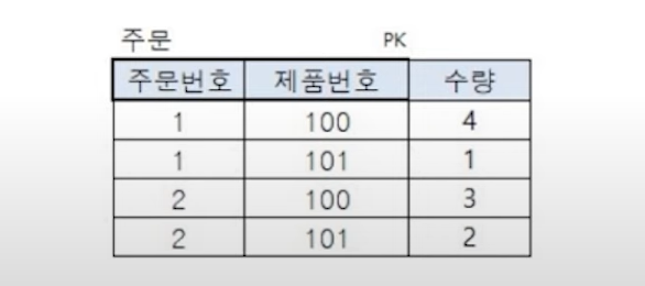 - 예) PK인 (주문번호+제품번호)에 의해 수량이 결정됨