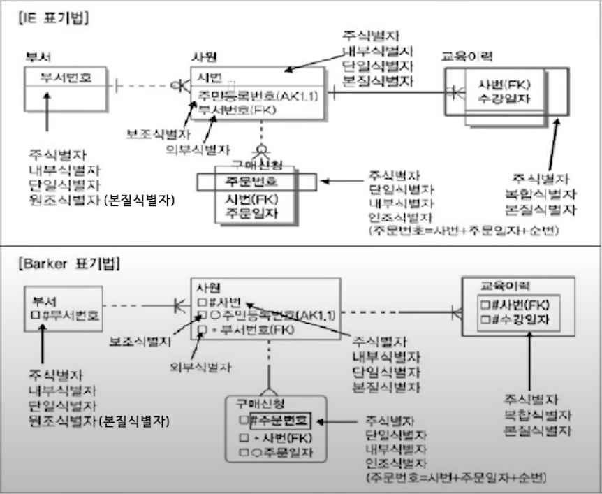 - 원을 사용하여 필수적, 선택적 관계를 구분
