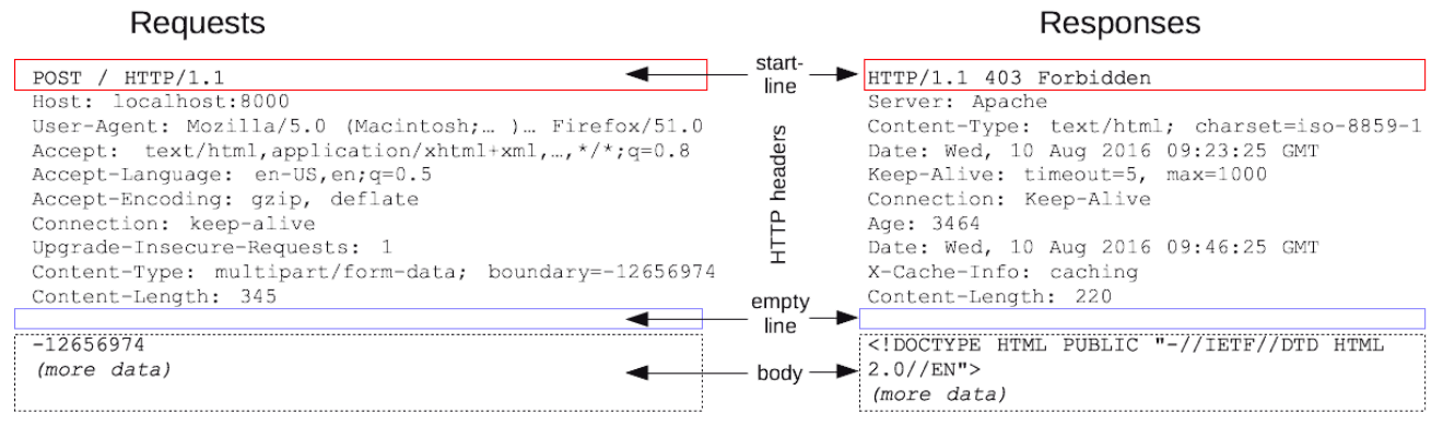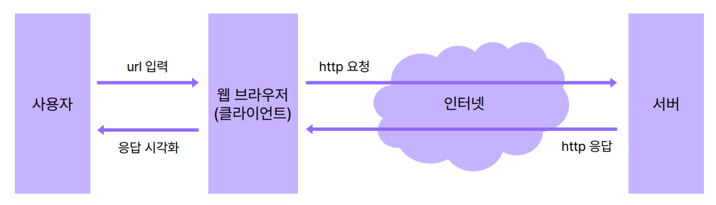 - 클라이언트(웹 브라우저)가 서버에 요청을 보내고, 서버가 응답을 돌려주는 방식