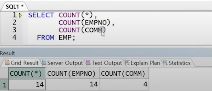 - 행의 수를 세는 경우 NOT NULL 컬럼을 찾아 세는 것이 좋음 (PK 컬럼)