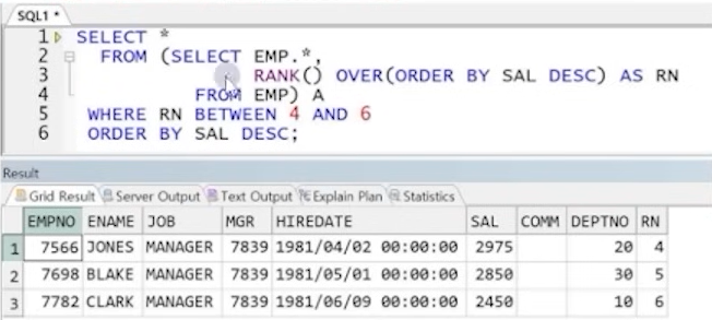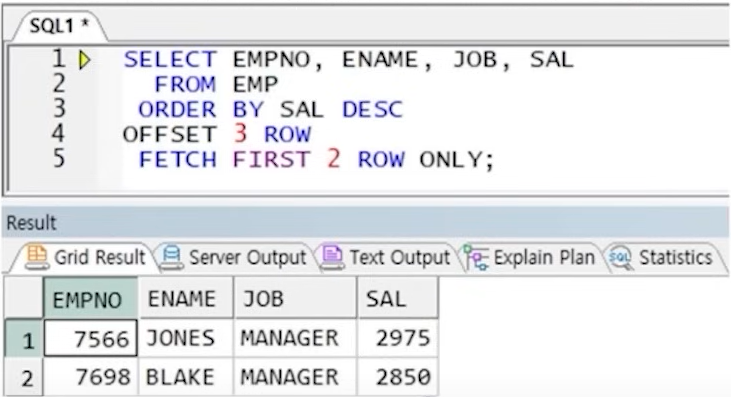 - ORACLE 12 이상부터 제공 (이전버전에서는 ROWNUM 주로 사용)