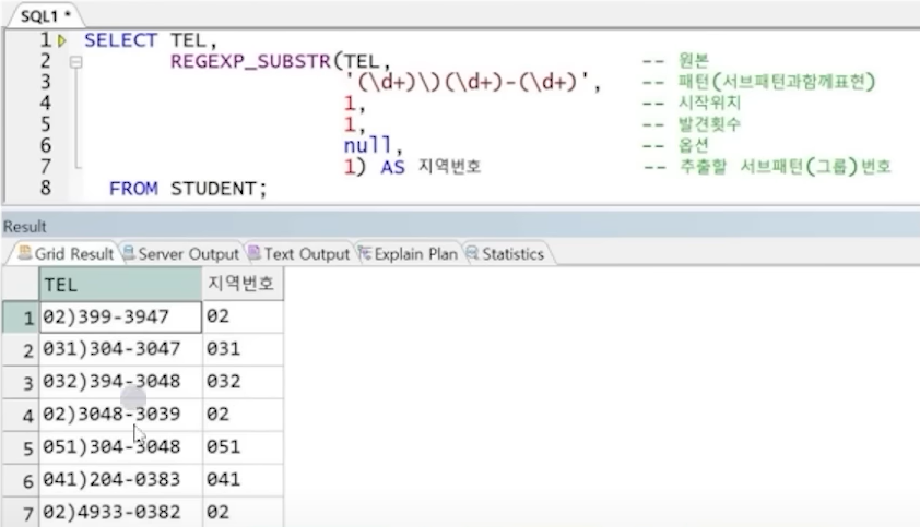 REGEXP_SUBSTR(대상, 패턴, [검색 위치], [발견 횟수], [옵션], [추출 그룹])