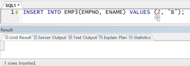 - 한 번에 한 행만 입력 가능 (SQL Server : 여러 행 동시 입력 가능)