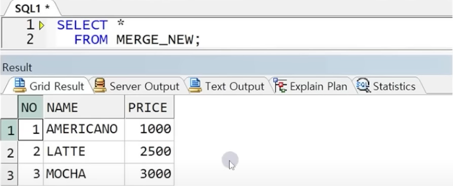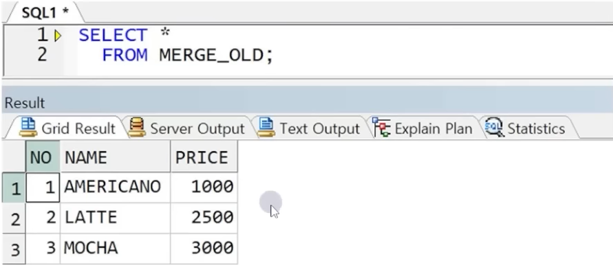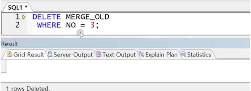예) OLD 테이블을 NEW 테이블과 동일하게 MERGE 문 작성