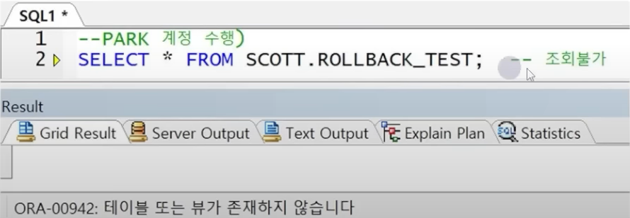 - 일반적으로 본인(접속한 계정) 소유가 아닌 테이블은 원칙적으로 조회 불가 (권한 통제)