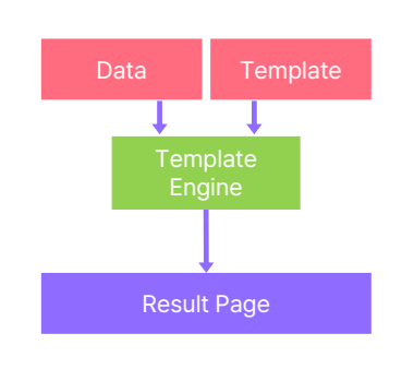 - 서버에서 데이터를 미리 정의된 템플릿에 넣어서 HTML을 생성하여 클라이언트에 전달