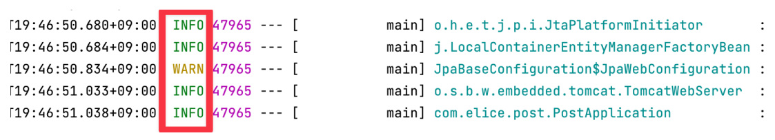 | ERROR | 즉시 대응해야 할 에러 레벨 로그 대응하지 않을 경우, 애플리케이션 동작 중지 등 심각한 장애를 겪을 수 있음 |