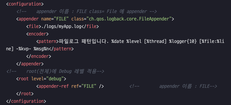 - SLF4J API를 사용하여 로그를 작성하면, 실제 로깅 작업은 Logback이 처리