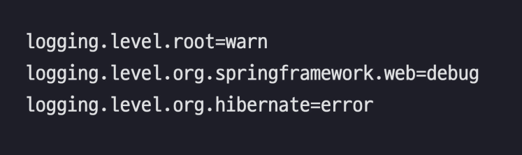 - 패키지, 클래스 별로 어느 정도의 정보를 로그로 남길 것인지 설정할 수 있음