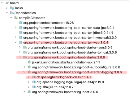 - springboot starter로 만들어 springboot-web 의존성이 추가되어 있다면 기본적으로 logback 로그 프레임워크 사용 가능